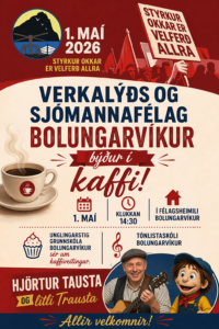 Verkalýðs og sjómannafélag Bolungarvíkur býður í kaffi 1. maí kl 14:30 í Félagsheimili Bolungarvíkur.
